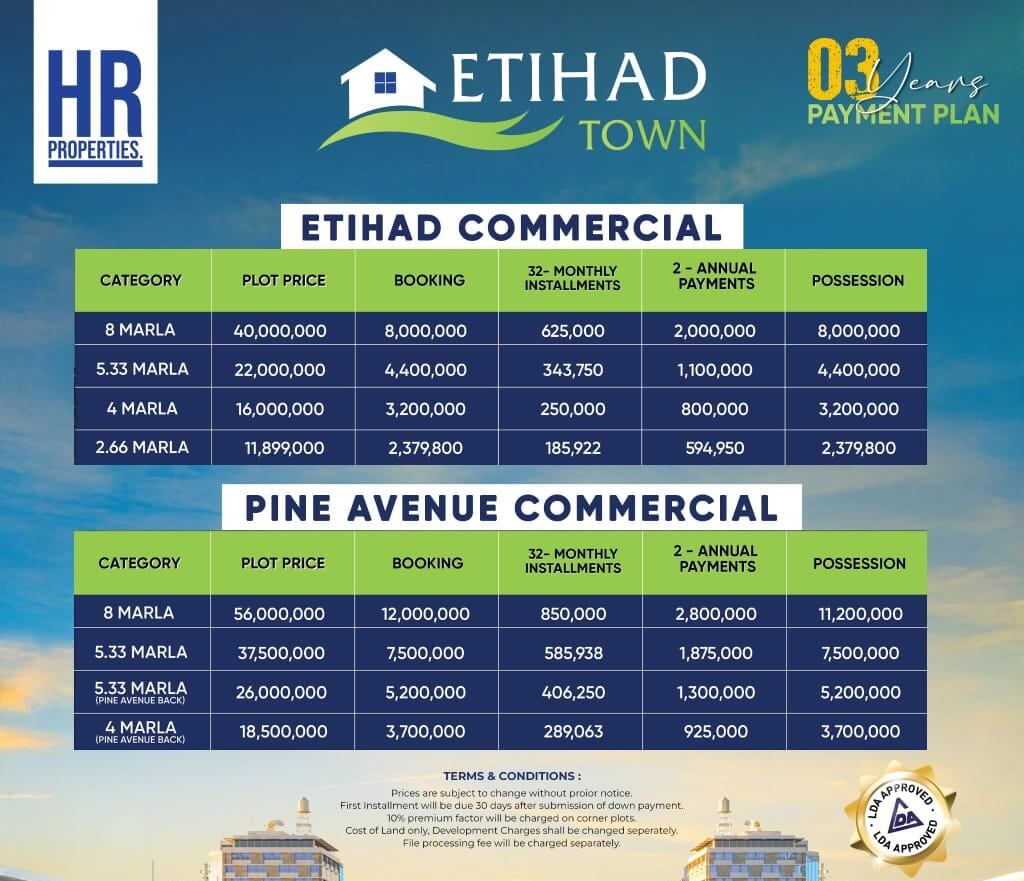 Pine Avenue Commercial, situated in the highly strategic and rapidly developing Etihad Town Phase 2, is unequivocally the most promising commercial venture in Lahore’s dynamic real estate market today. This project, launched by the reputable Etihad Town Developers, stands as a testament to world-class commercial planning, offering a secure, high-potential investment on a major emerging city artery. The core appeal of Pine Avenue Commercial is its integration of an exceptional location with a highly accessible 3-Year Payment Plan, which is clearly illustrated in the provided image. This combination makes it a ‘brand-perfect’ location for major businesses and a ‘future-proof’ asset for any astute investor.